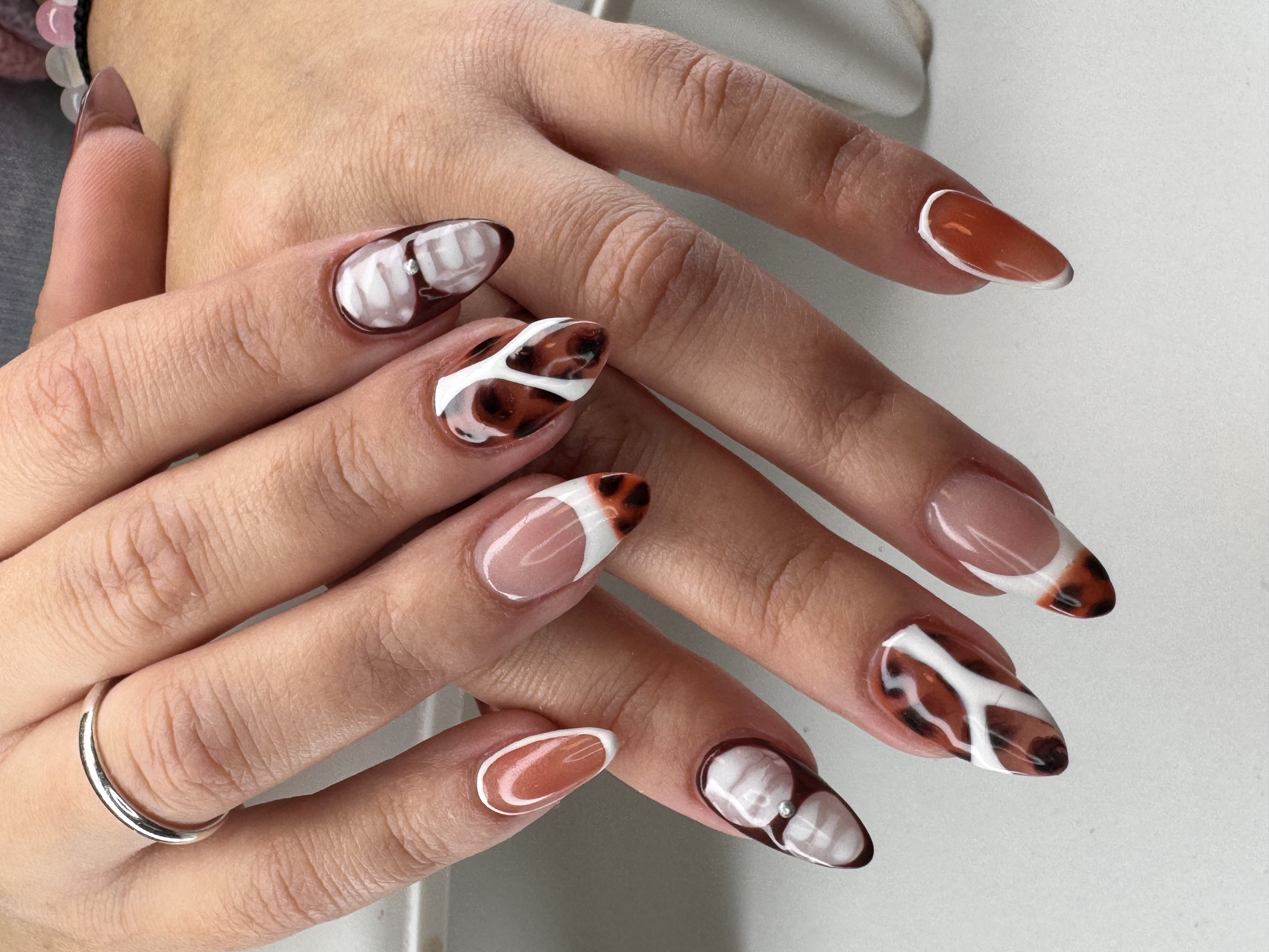 Mellem Forlængelse med håndmalet mønster på alle 10 negle.